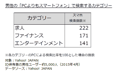 オリジナル記事:男性がPCよりもスマートフォンで検索しているものとは?(2015/07/21)