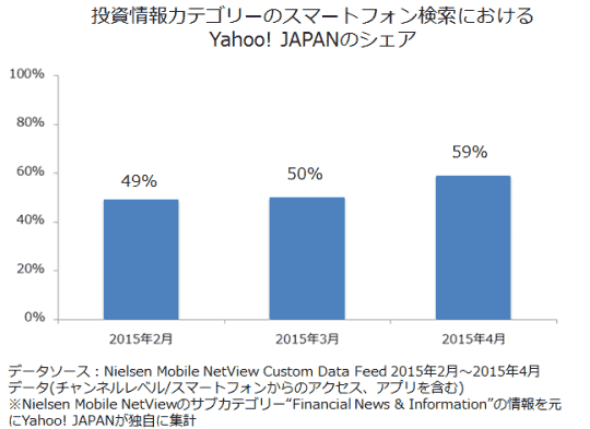 ファイナンス関連の検索については、金融情報を扱う人気コンテンツ「Yahoo!ファイナンス」との親和性が非常に高いことも、Yahoo! JAPANのスマートフォン検索におけるシェアを支える一因となっているかもしれません。